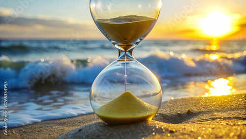 Seascape Hourglass: Waves & Tides Symbolizing Business Opportunities