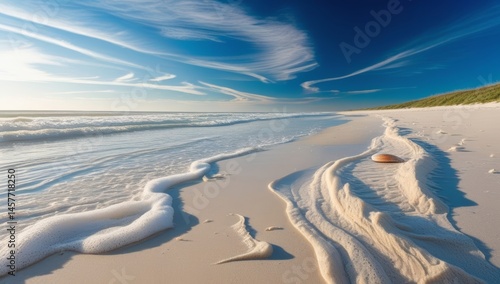 Seascape serenity with tranquil waves washing ashore on a pristine sandy beach