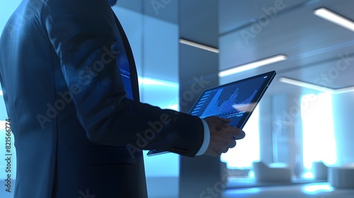 Seasoned Corporate Leader Examines BlockchainIntegrated Financial Analytics on HighEnd Tablet