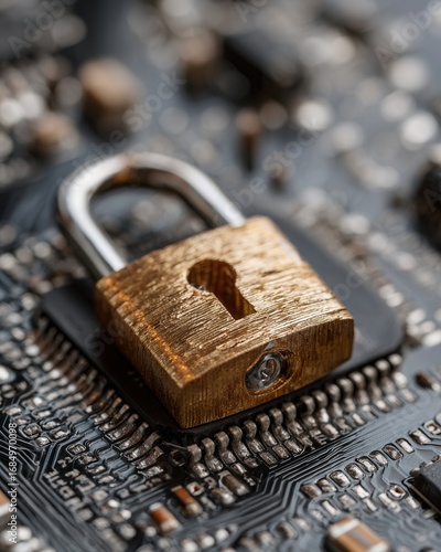 Secure Lock on Computer Circuit Board Representing Cybersecurity Concept