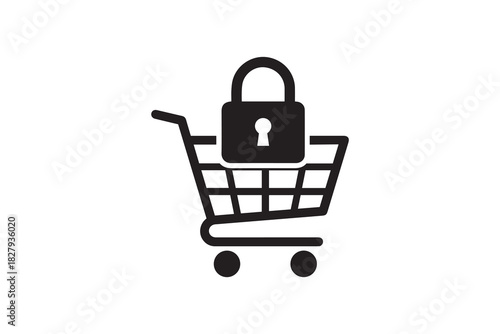 Secure shopping cart with padlock Locked shopping cart black and white glyph