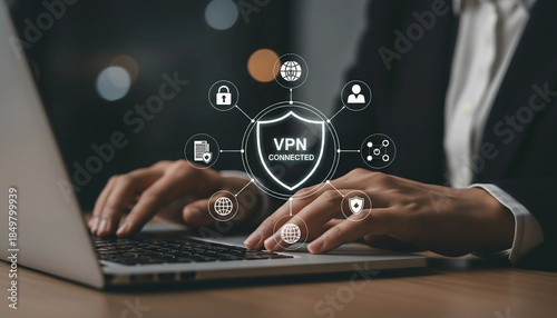 Secure VPN Network Access, Cybersecurity Protection, Remote Work Online Privacy, Digital Safety Technology
