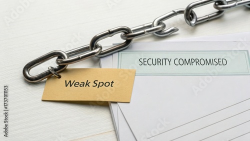 Security Document Highlighting Weak Spot with Chain and Label Indicating Compromise in Safety Measures and Security Protocols