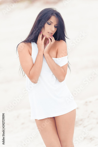 Seductive young woman posing in white shirt
