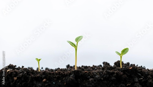 Seedling growth stages in soil, from germination to sprout, on white background, sprout, seedling