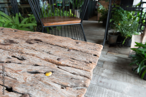 Selected focus empty old brown wooden table in Coffee shop , for