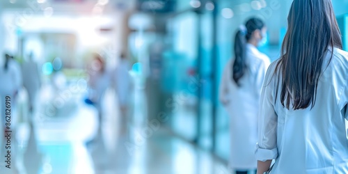 Selective focus on hospital doctors in blurred background human enhancement concept. Concept Hospital Staff, Selective Focus, Medical Professionals, Blurred Background, Human Enhancement Concept