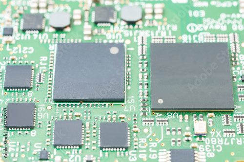 Semiconductor Chip for Electronics in White background, Industrial or Electrical Background, Nobody, Macro