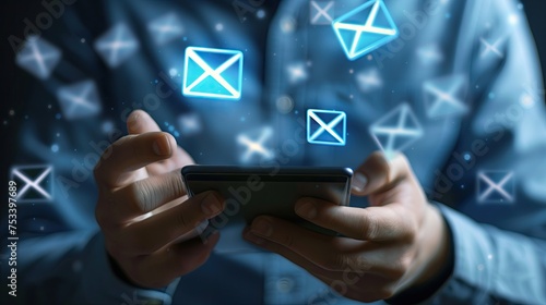 Sending SMS smartphone and email with notification alert, Online communication concept.