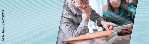 Senior business people working on tablet. panoramic banner