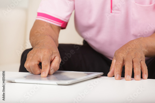 Senior man using digital tablet
