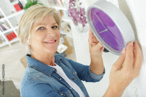 senior woman holding a clock