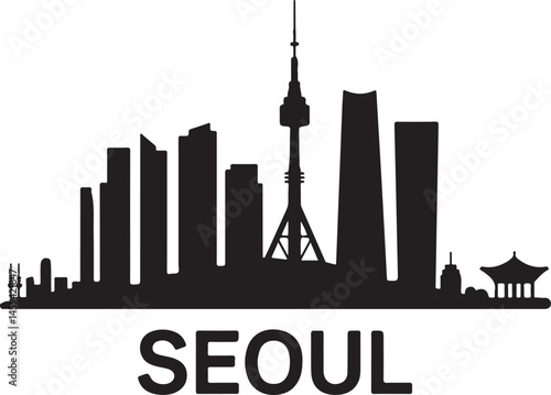 Seoul City Skyline Silhouette Traditional Seoul Temple Vector N Seoul Tower Minimalist Art Seoul at Night Cityscape Korean Architecture Silhouette Design