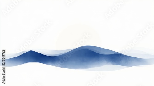 Serene Abstract Landscape with Soft Curved Blue Waves Against a Light Background Symbolizing Calmness and Tranquility in Nature