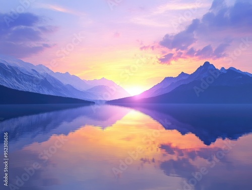 Serene Alpine Lake Sunrise with Mountains Reflecting in Calm Waters