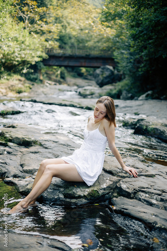 Serene and Tranquil Moments by the Reflective Water A Beautiful Woman Embracing Nature