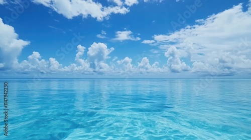 Serene Blue Ocean and Cloudy Sky with Calm Water Surface