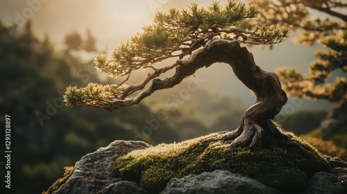 Serene Bonsai Tree on Rocky Surface Amidst Soft Natural Light