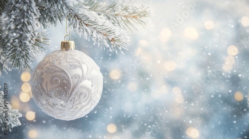 Serene Christmas Banner with Frosted Ornament and Text Space