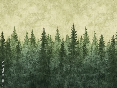 Serene Evergreen Forest Landscape Vintage Textured Background
