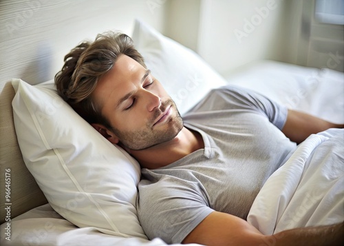 Serene Image Of A Man Lying Down On A Comfortable Bed, Lost In Peaceful Slumber Or Relaxation