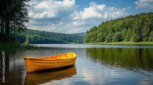 Serene Lake Scenery with a Yellow Boat