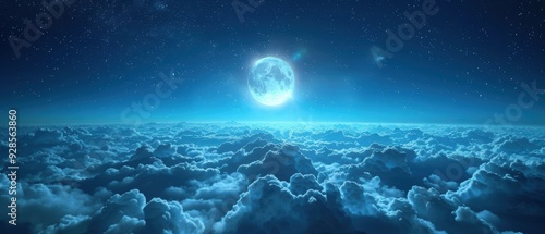 Serene Moonlit Clouds: Illuminated Full Moon in Night Sky