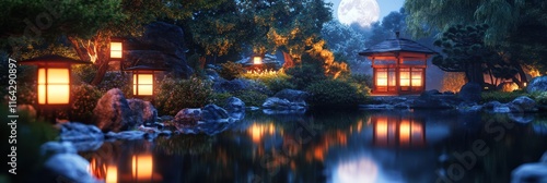 Serene Moonlit Japanese Garden Night Scene