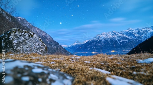 Serene Mountain Landscape Under Starry Night Sky in Winter