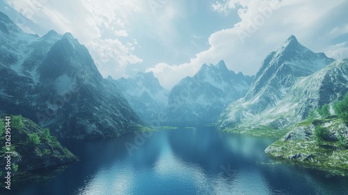 Serene Mountain Landscape with Clear Lake and Dramatic Sky