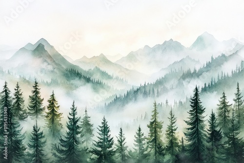 Serene Mountain Landscape with Misty Atmosphere