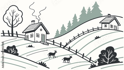 Serene Mountain Village Terraced Hills, Cozy Cottages, and Grazing Goats