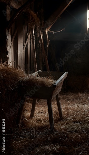 Serene nativity scene bathed in gentle light a peaceful stable’s quiet embrace