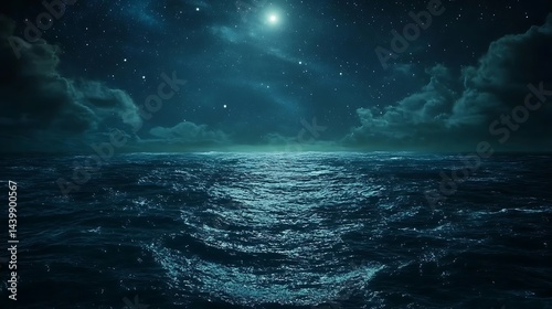 Serene Nightscape of Starlit Ocean Under a Bright Moon