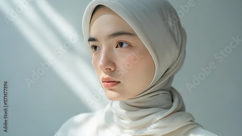 Serene Portrait of a Young Muslim Woman in Soft Light