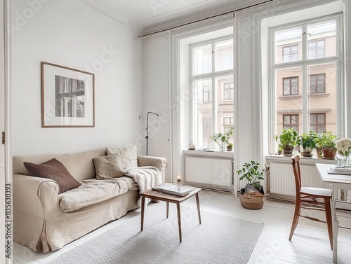 Serene Scandinavian Living Room Interior Design with Natural Light and Minimalist Decor