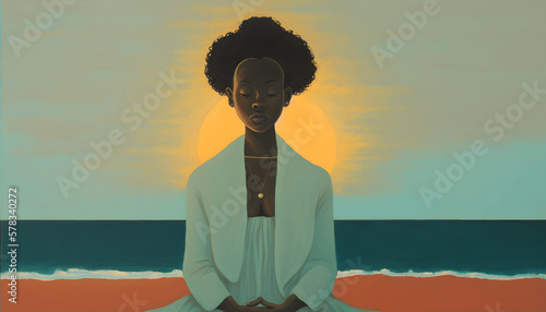 Serene Shore, A Woman Practicing Yoga on the Beach
