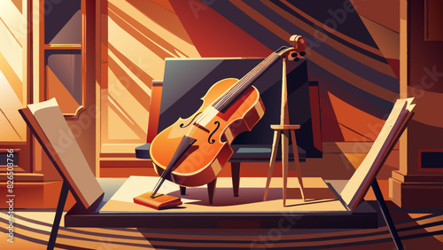 Serene Studio with Cello and Canvas in Warm Sunset Light