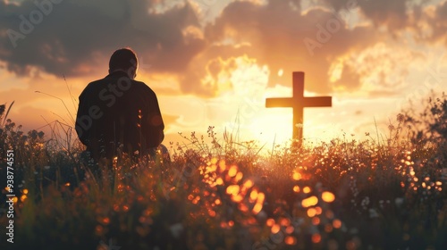 Serene Sunrise A Deep Faithful Reflection Amidst the Cross during the Morning Hours