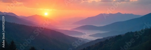 Serene sunrise over a misty mountain range, embodying spiritual connection with nature's tranquility Perfect for meditation, yoga, and mindfulness themes , sunrise, ethereal, mindfulness