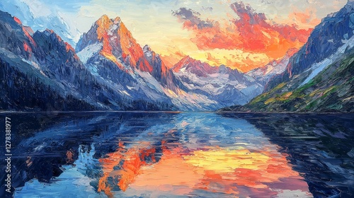 Serene sunset reflection over mountain lake nature landscape tranquil environment artistic viewpoint