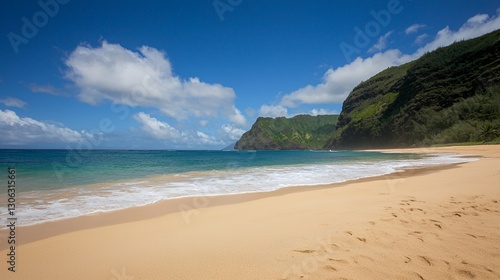 Serene Tropical Beach with Calm Ocean Waves under Sunny Sky