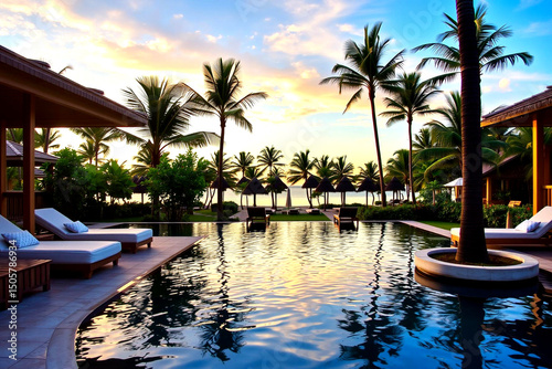 Serene Tropical Oasis with Infinity Pool at Sunset