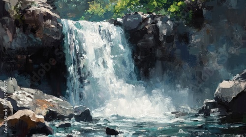 Serene waterfall cascading through rocky terrain surrounded by lush greenery showcasing nature's beauty and tranquility