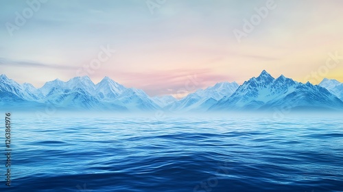 Serene Winter Landscape: Misty Mountains at Dawn AI Generated