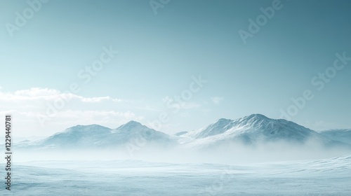 Serene winter landscape snow-capped mountains scenic view tranquil environment wide angle