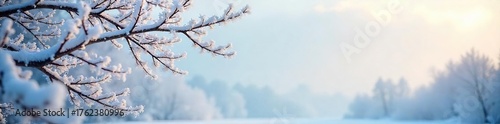 Serene Winter Wonderland Contemplative Snow-Covered Branches Under a Pale Sky