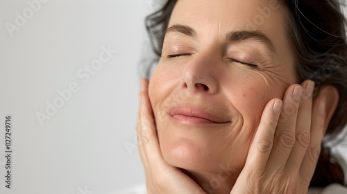 Serene woman enjoying a tranquil moment. Close-up portrait perfect for wellness and beauty concepts. AI