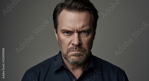 Serious Man Portrait, Intense Gaze, Studio Shot