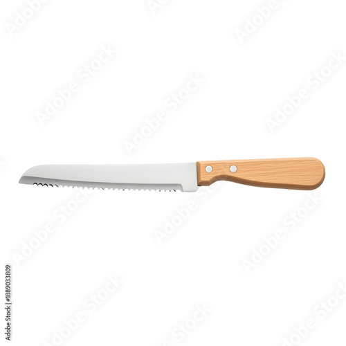 Serrated bread knife with wooden handle isolated transparent background
